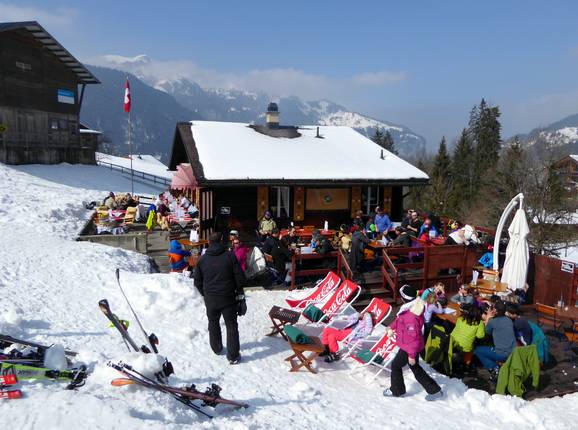 Het skigebied Kleine Scheidegg/Männlichen biedt een ruime keuze aan horecagelegenheden. Over het hele skigebied zijn gezellige berghutten, restaurants en snackbars verspreid. Er zijn bovendien veel mooie zonneterrassen met uitzicht op de Eiger, Mönch en Jungfrau. Er worden voornamelijk Zwitserse specialiteiten aangeboden.