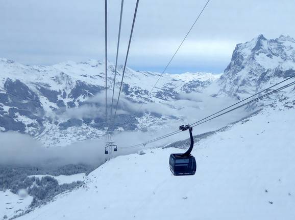 Vanaf het Grindelwald Terminal kun je sinds het seizoen 2020/21 ofwel met de Eiger Express (3-persoons kabelbaan) direct omhoog naar de Eigergletscher, of met de Männlichenbahn (10-persoons gondelbaan) omhoog naar de Männlichen. Deze twee liften staan ook bekend als de V-Bahn, omdat ze als een V de twee delen van het skigebied direct vanuit het Grindelwald Terminal ontsluiten. Wacht- en lange reistijden behoren nu tot het verleden. Daarnaast kun je nog steeds vanuit Grindelwald Grund met de tandradbaan naar de Kleine Scheidegg.
