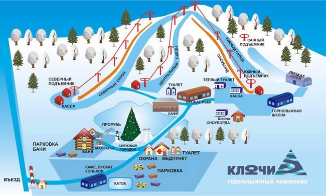 Kamenushka (Каменушка) (0,7 km), Novosibirsk (Новосибирск) (36 km) Plaatsen bij het skigebied