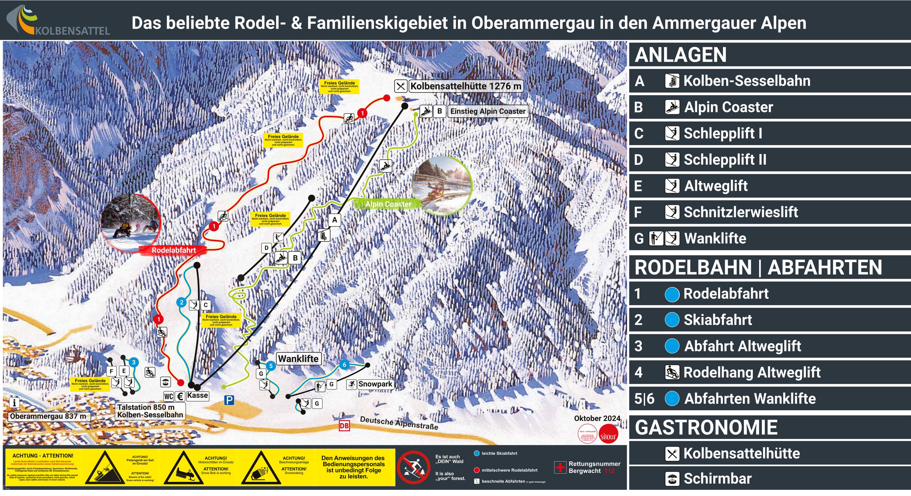 Pistekaart Kolbensattel – Oberammergau seizoen 2025/2026