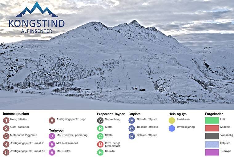 Pistekaart Kongstind Alpinsenter seizoen 2024/2025