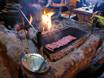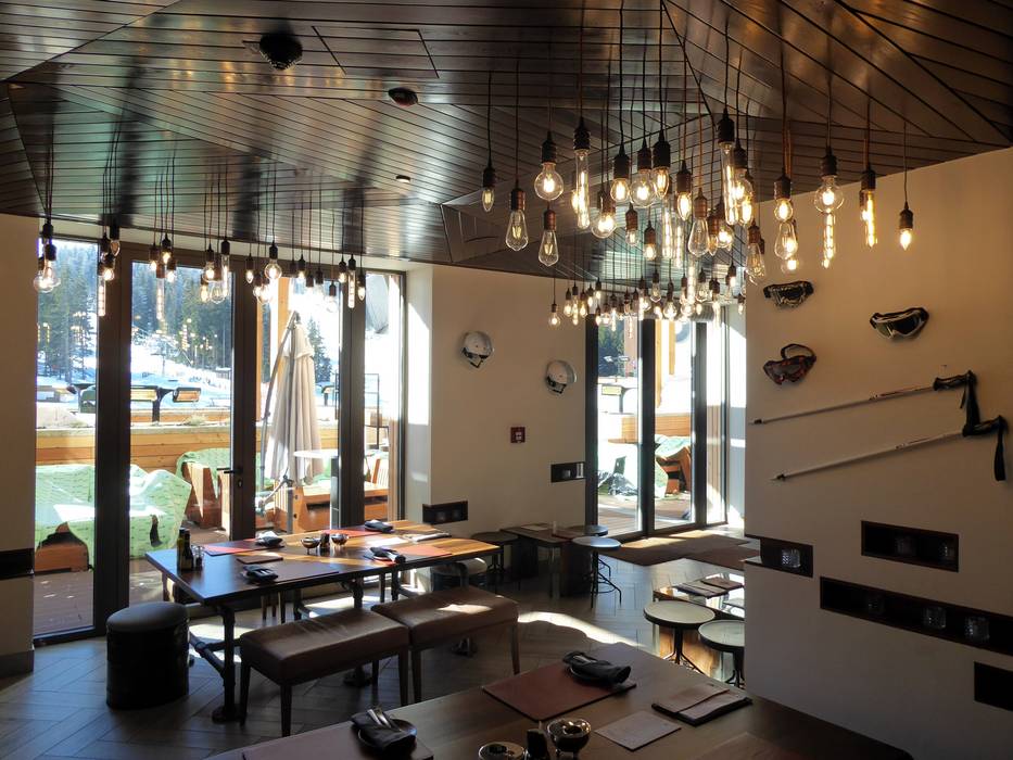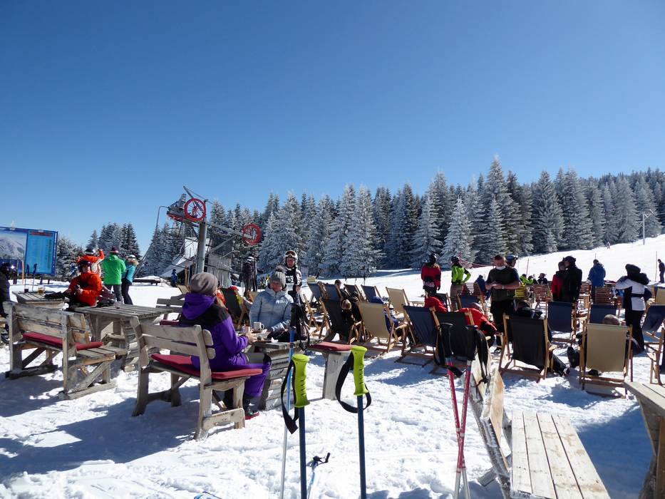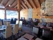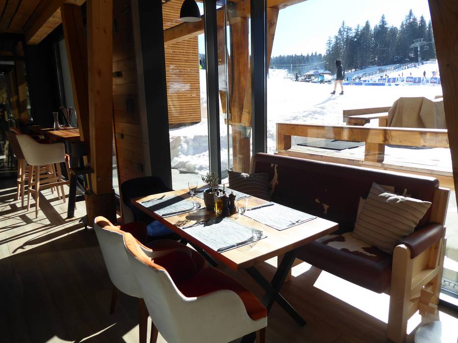 De skihut biedt regionale specialiteiten van de grill. Het speenvarken is hier erg populair. Een goede selectie wijnen en ligstoelen maken het aanbod compleet.