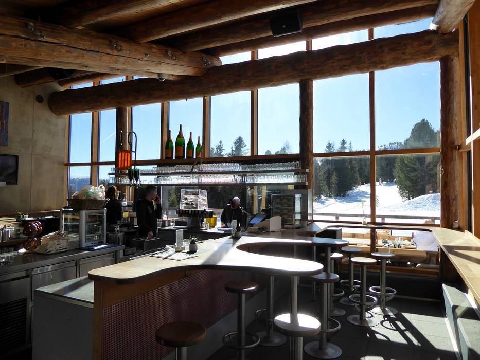 Het spectaculaire gebouw is met de bar en het zonneterras ideaal voor après-ski. DJ’s zorgen voor goede muziek.