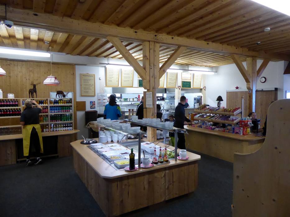 Het zelfbedieningsrestaurant ligt in het centrum van het skigebied.
