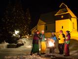 Na de gezamenlijke nachtelijke bergtocht met de Montafoner Kristbergbahn wandel je op je gemak ongeveer 250 meter naar de Bergknappenkapelle St. Agatha, waar de eerste sagen en verhalen verteld worden. Als verwarmende tussenstop is er een warm alcoholisch of alcoholvrij drankje uit de koperen ketel bij de Bergknappenbron. Daarna ga je naar de gezellige stube van het Panoramagasthof Kristberg, waar geschiedenis in verhalen en een verfijnde 3-gangen culinaire reis naar het vroege Montafon elkaar afwisselen.
