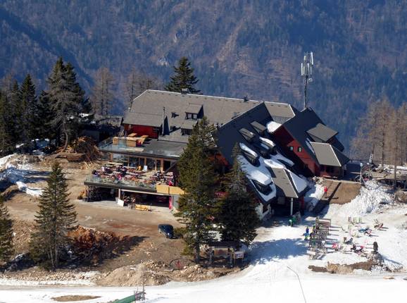 In het skigebied Krvavec kun je in enkele accommodaties midden in het skigebied overnachten. De toegang is mogelijk met de gondelbaan of met de auto via smalle bergwegen. Hotel Krvavec is het hoogste hotel van Slovenië.