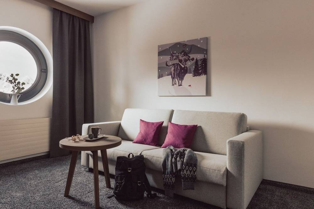Direct achter het hotel stapt u vanuit de skiruimte zo het eindeloze skiplezier in, voordat u na een lange dag op de piste uw vermoeide spieren in de SPA weer tot leven brengt. Geniet van de warmte van onze Finse Black Angus sauna of de kruidentempel en ontspan in het hooi-bed – allemaal met uitzicht op de besneeuwde bergen.