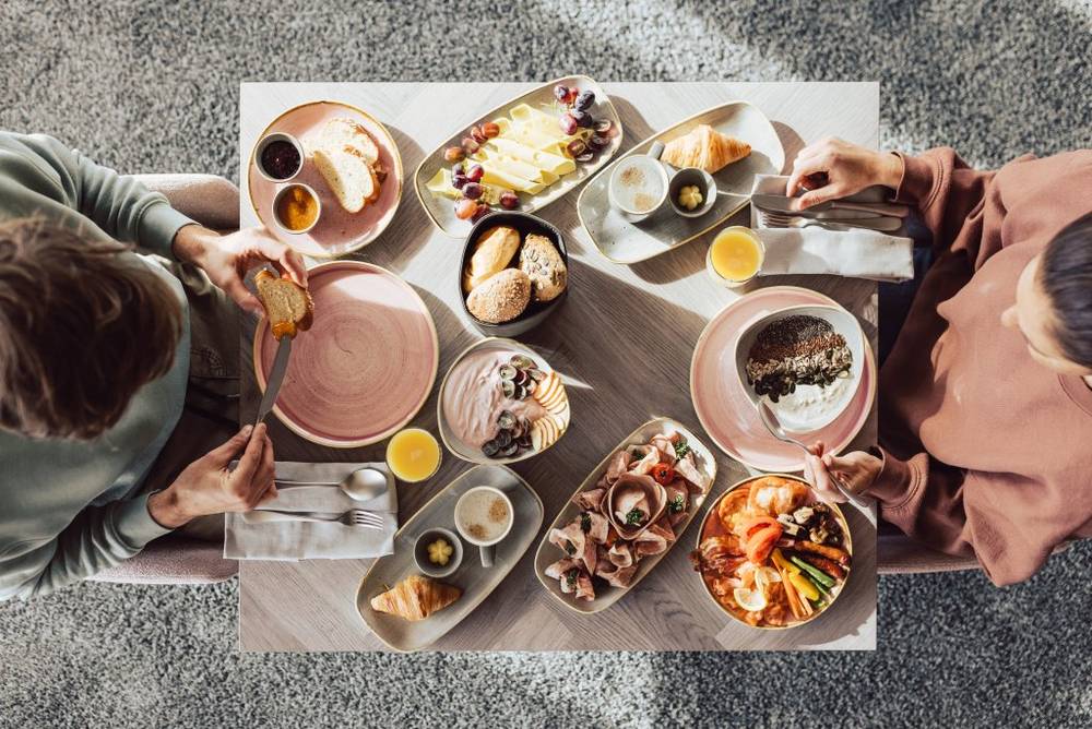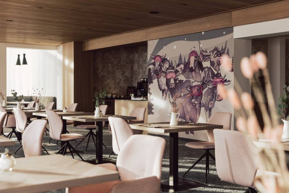 Met uitzicht op het besneeuwde berglandschap begint uw dag hier met ons geniet-ontbijt – regionaal, onverpakt en met lokale producten.