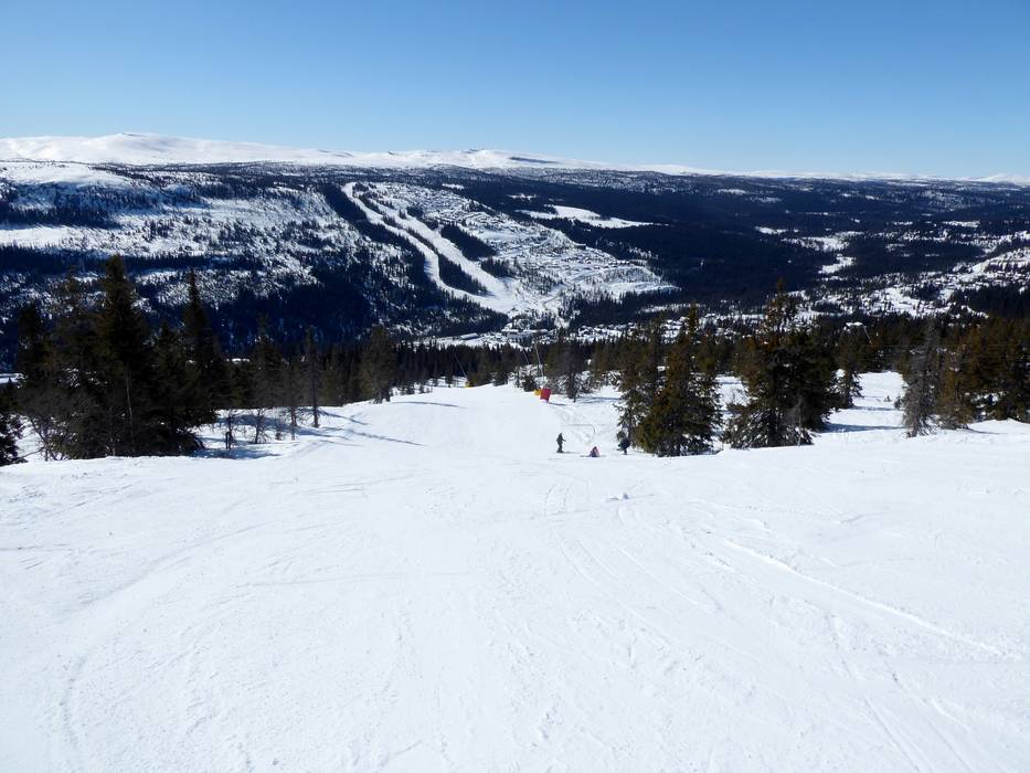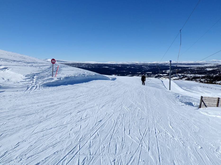 De moeilijke dalafdaling Olympiabakken kan worden omzeild via de middelzware Skiveien (sleepweg).