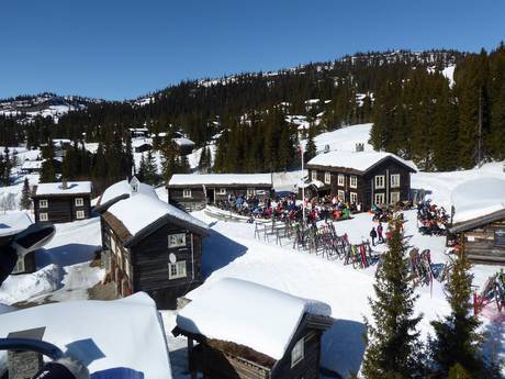 In het skigebied van Kvitfjell vind je veel horecagelegenheden direct aan de pistes. Bij mooi weer kun je op de terrassen van de zon genieten. In alle restaurants wordt geen contant geld meer geaccepteerd.