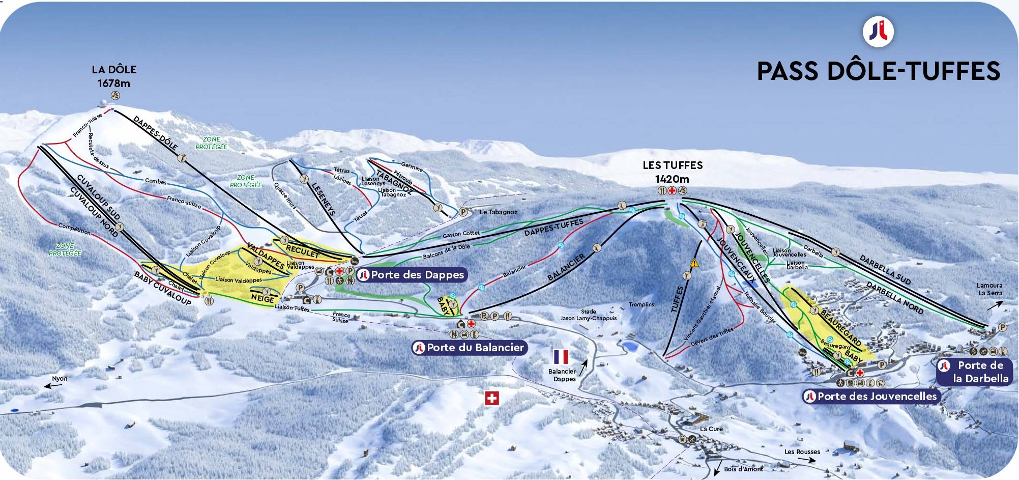 Pistekaart La Dôle/Les Tuffes (Jura sur Léman) seizoen 2024/2025
