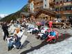 Groot, op het zuiden gericht terras. Gevarieerde menukaart met dagschotel, pastagerechten, salades, vleesgerechten en skiërsmaaltijden.