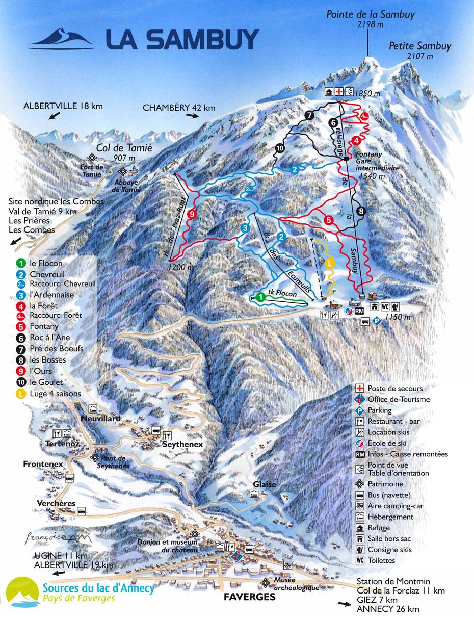 Pistekaart La Sambuy – Seythenex seizoen ---- !!! closed temporarily/vorübergehend außer Betrieb