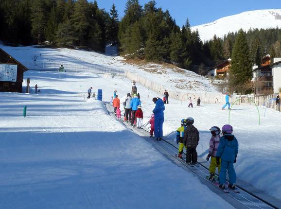 Aan de rand van Falera, ver weg van stress en drukte, voelen kinderen zich helemaal thuis in het Ami Sabi Schneewunderland. Een transportband en een sleeplift brengen de kleintjes omhoog. Ook beginners zijn hier welkom.