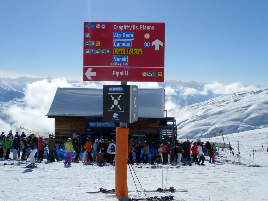 In het hele skigebied van Laax zijn de pistes zeer goed aangegeven. Op de meeste plekken vind je ook pistekaarten. Digitale displays en actuele informatie maken het geheel compleet. Bij elke liftinstallatie zijn de openingstijden en verdere informatie voorbeeldig weergegeven.