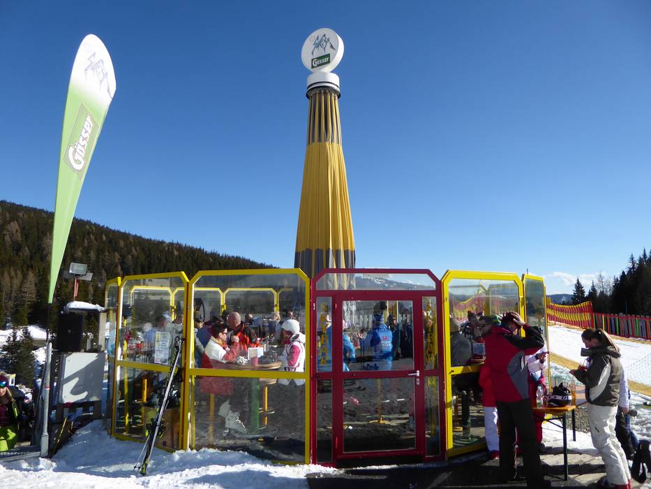 De après-ski hotspot op de Lachtal. De Schirmbar is dagelijks geopend en vanaf de middag is er feeststemming. Bij mooi weer opent de Sky Bar haar dak.