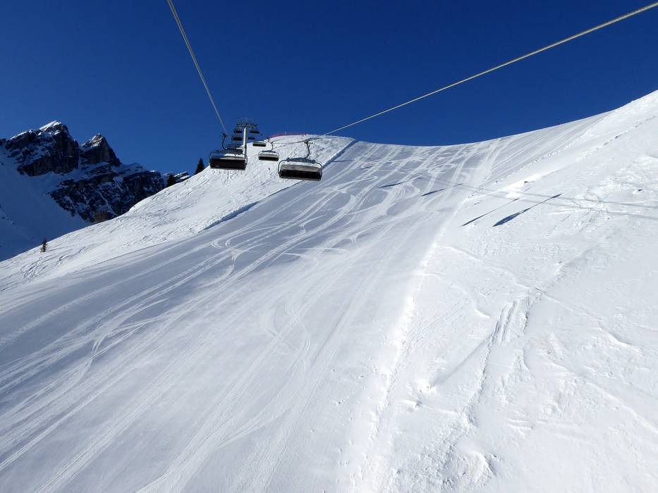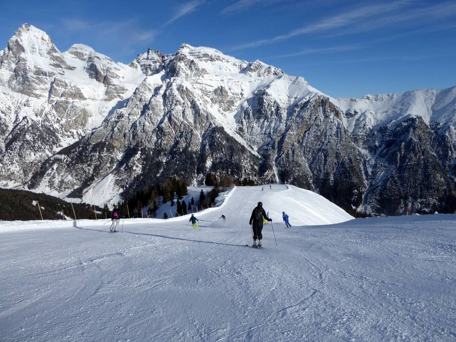 Een middelzware piste leidt direct naar het dalstation Ladurns.