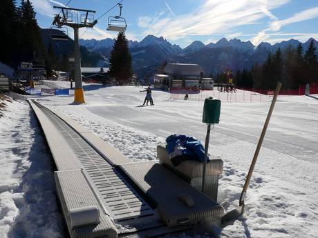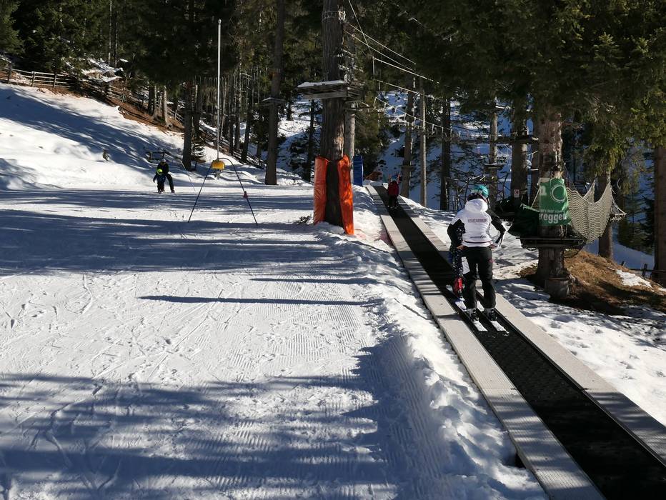 Bij het bergstation van de gondelbaan van Predazzo is er een begeleide kinderopvang met een transportband en een kinderpiste.