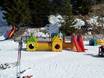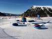 De ski- & snowboardschool Obereggen biedt in het Yeti Kinderland met transportband en skicarrousel al skilessen aan voor de allerkleinsten.
