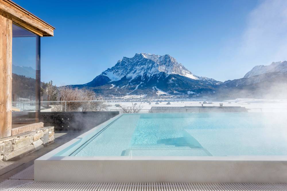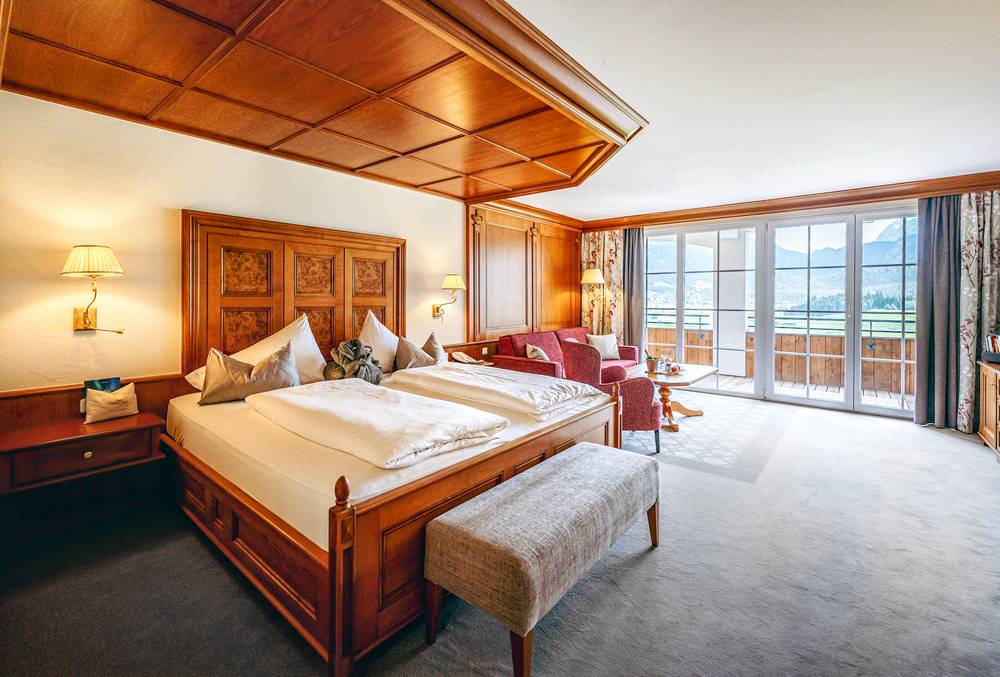 De suites bieden elk denkbaar comfort. Dankzij de vrije ligging van het hotel geniet u van uw persoonlijke logeplaats met uitzicht op de Zugspitze.