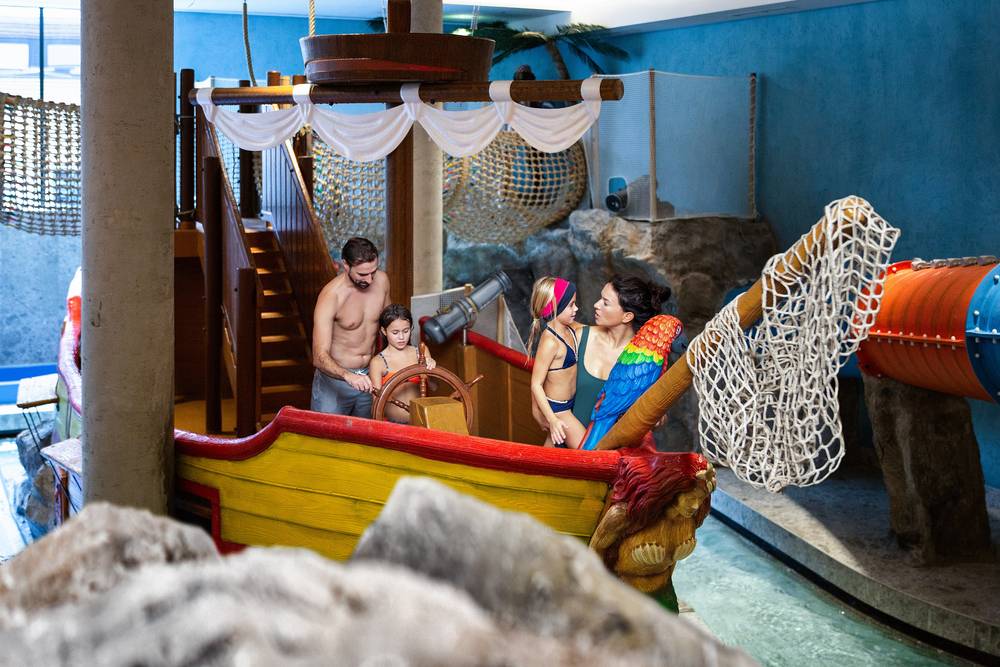 De populaire waterwereld is heerlijk ruim opgezet. Het binnen- en buitenzwembad is uitgestrekt aangelegd. Daarnaast is er een zeer groot kinderzwemgedeelte met talrijke glijbanen, een kidspool, een piratenschip en een lazy river. Op de 90 meter lange waterglijbaan vergeten zelfs kleine muiters het muiten.