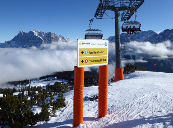 Je vindt gemakkelijk je weg in het skigebied. Op alle belangrijke punten staan borden met informatie. Er zijn voldoende pistekaarten in het skigebied geplaatst.