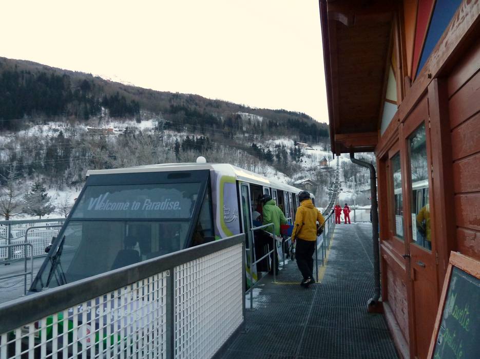 Kabeltrein in het skigebied Les Arcs/​Peisey-Vallandry (Paradiski)