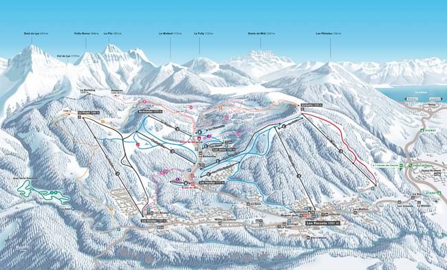 Kaart met route lift: Pralet