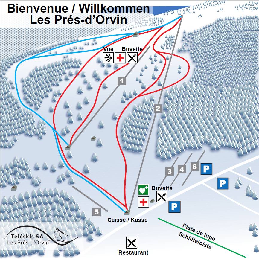 Pistekaart Les Prés d'Orvin seizoen 2025/2026