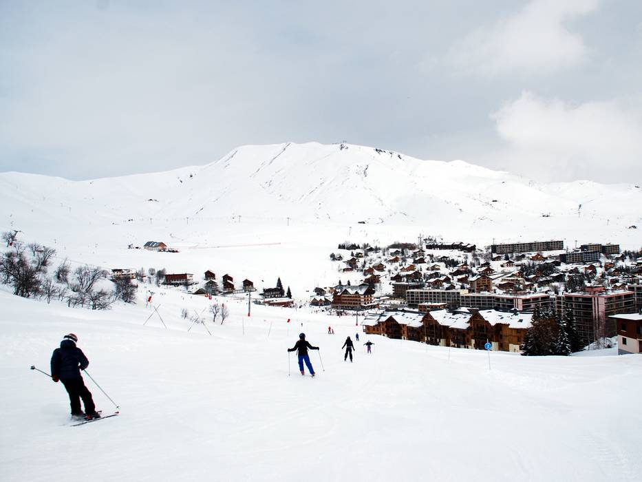 Aan de achterkant van het skigebied loopt deze blauwe piste, weg van alle liften, over ongeveer drie kilometer van het hoogste punt naar de Chalets d’Olle onder de Col de la Croix de Fer. - Granges