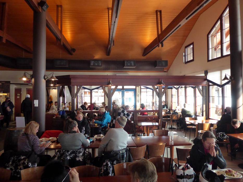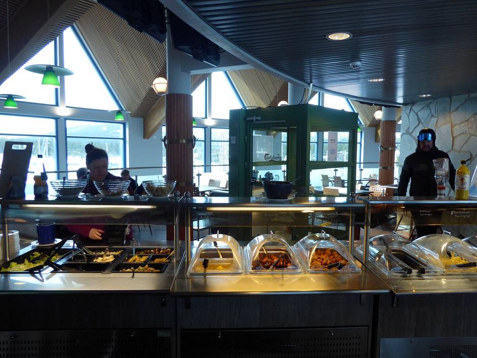 De grote skihut biedt een goede keuze aan eten en drinken. ’s Middags is er ook een buffet.