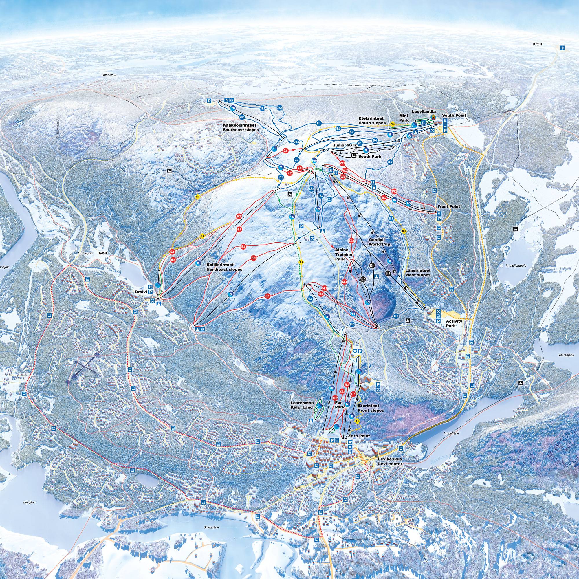 Het pisteplan geeft een zeer goed overzicht van het skigebied Levi. Alle afdalingen en liften zijn duidelijk genummerd. Daarnaast vind je op de achterkant de openingstijden van de liften, skibusroosters en verdere informatie. Het pisteplan heeft bovendien een handig zakformaat. Hoogtegegevens zouden nog wenselijk zijn.