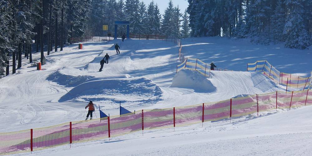 Het Snowpark Lipno biedt een compleet terrein voor freestyle snowboarden of freeskiën, geschikt voor absolute beginners en ervaren skiërs.Het eerste gedeelte heeft vier boxen en lage sprongen, ideaal om de freestyle-basis te leren, speciaal ontworpen voor beginners.