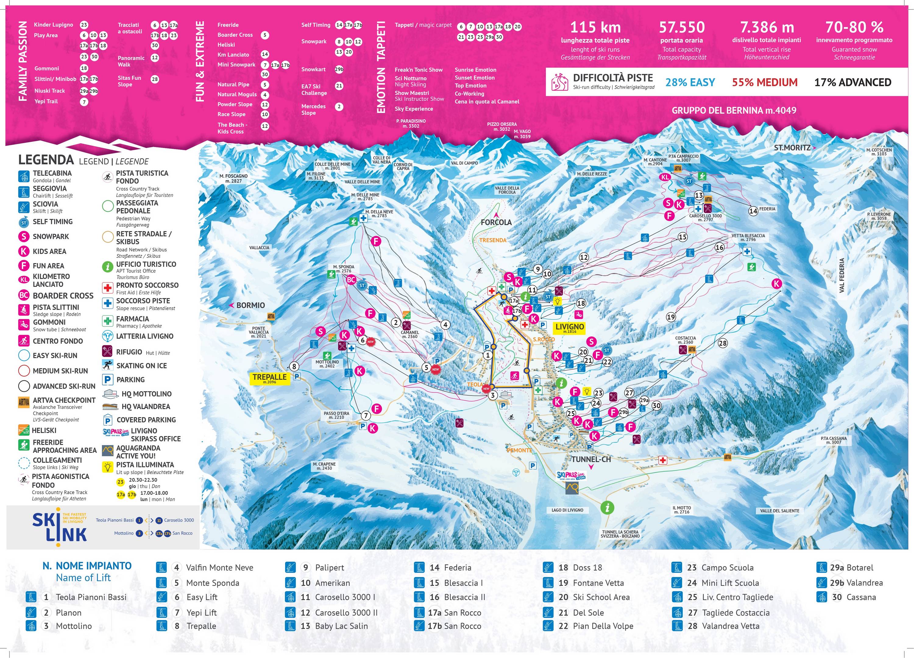 Pistekaart Livigno seizoen 2025/2026