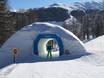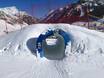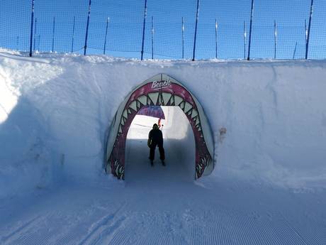 Het Fun Area bij de Cassana gondelbaan biedt leuke figuren en een sneeuwtunnel.