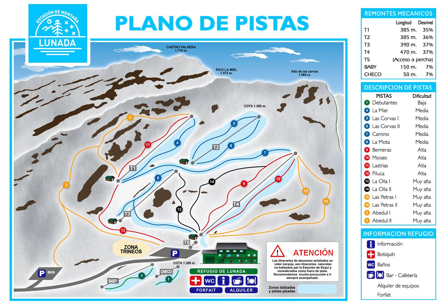 Pistekaart Lunada seizoen ---- !!! closed temporarily/vorübergehend außer Betrieb