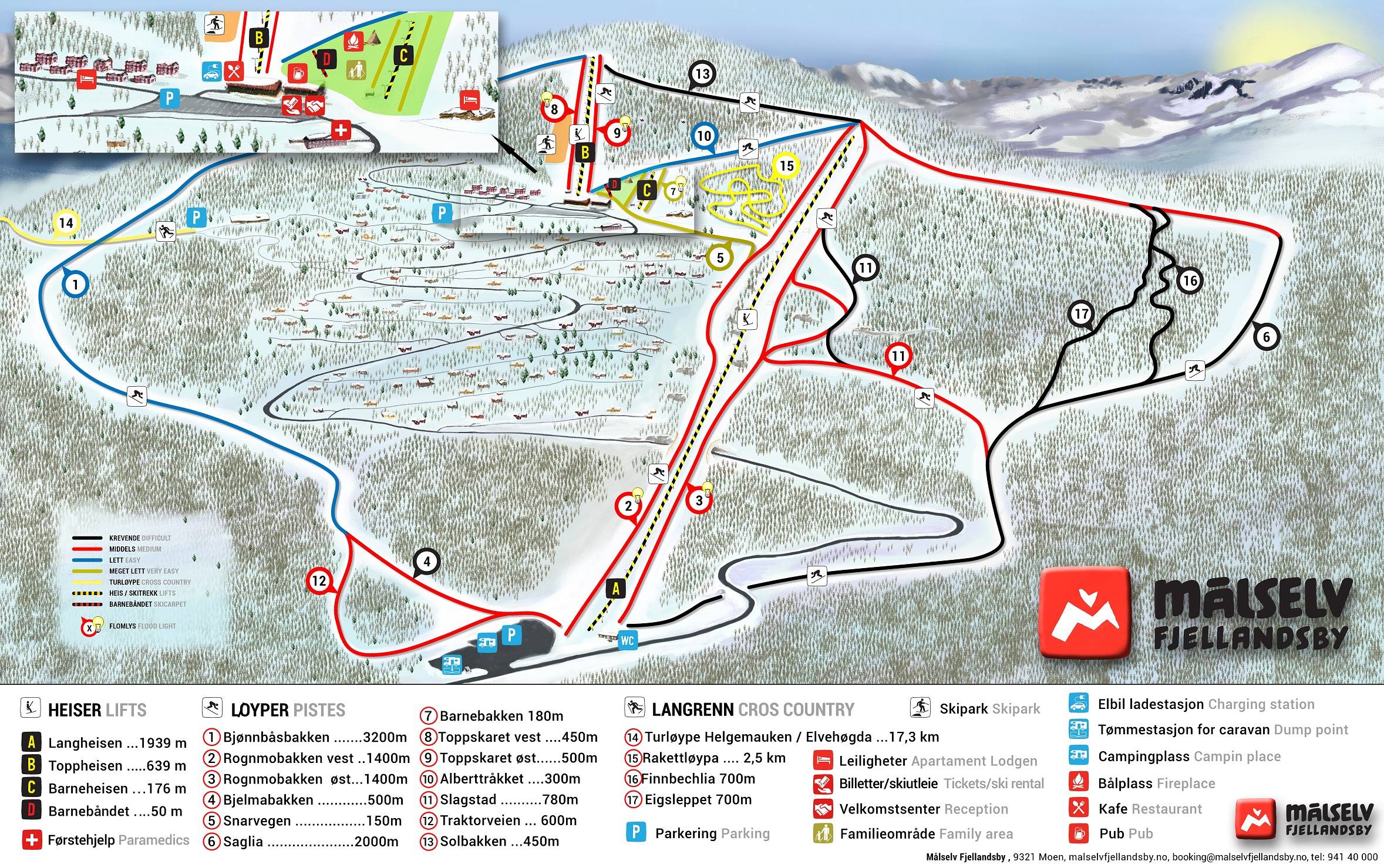 Pistekaart Målselv Fjellandsby seizoen 2024/2025