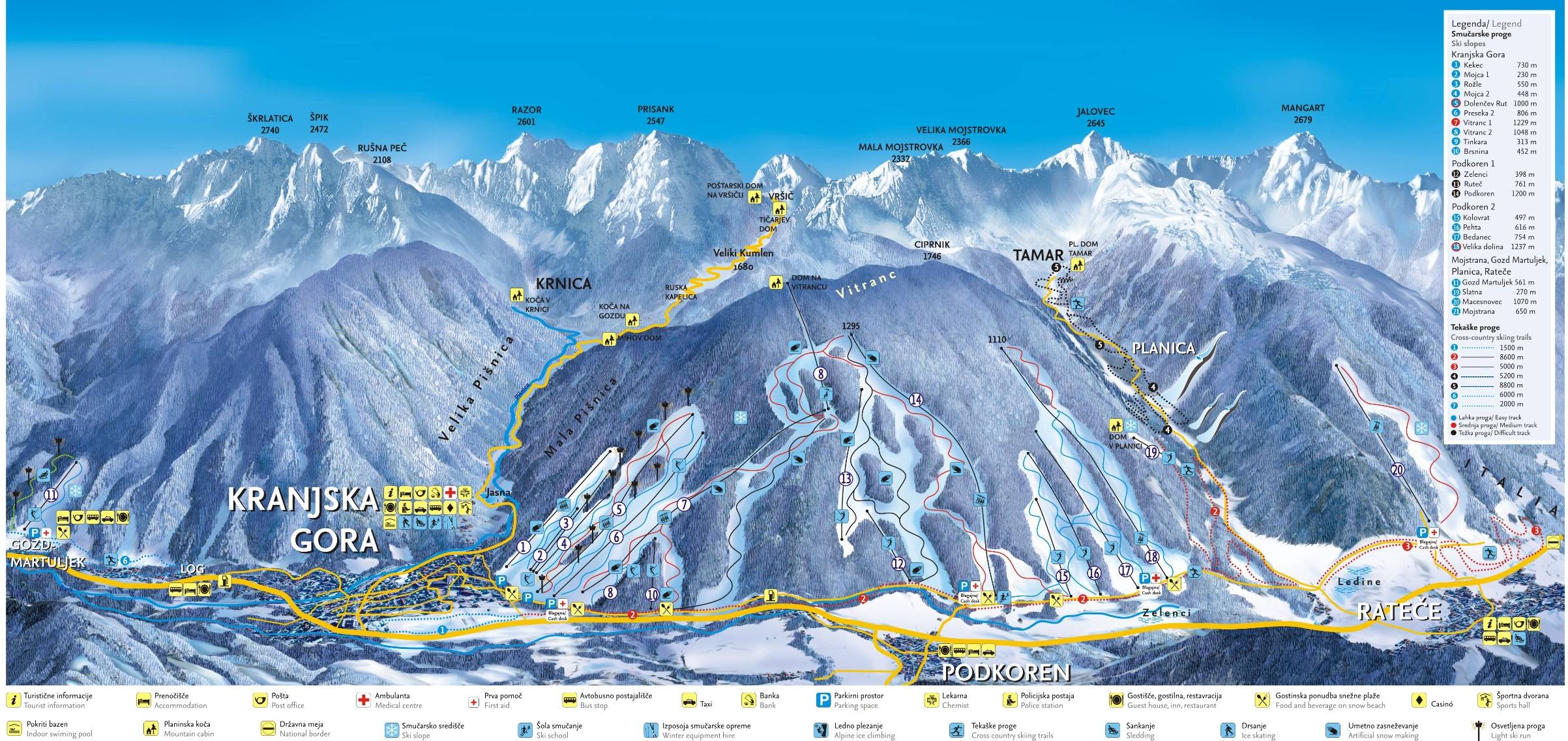 Pistekaart Kranjska Gora - Rateče seizoen 2024/2025