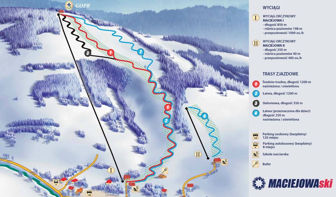 Pistekaart van het skigebied Maciejowa – Rabka-Zdrój