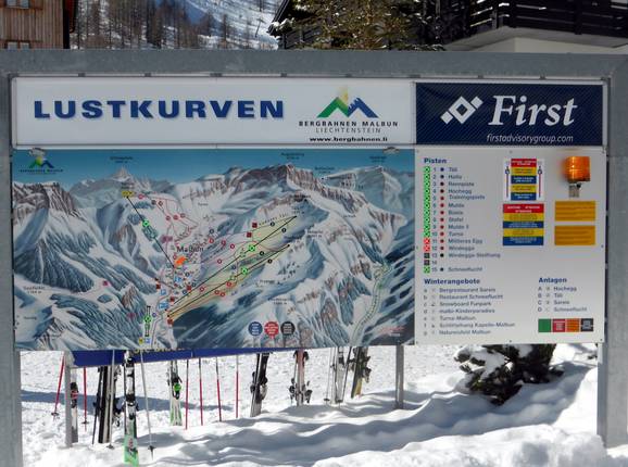 Oriëntatie (pistekaart, informatieborden, bewegwijzering piste) en veiligheid in het skigebied Malbun
