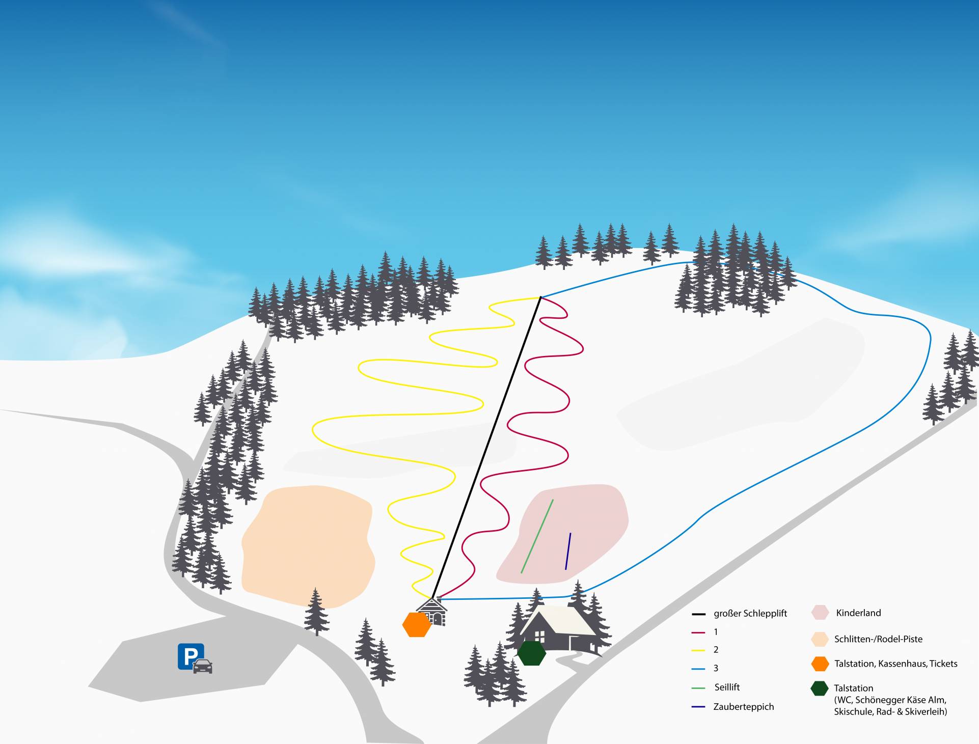 Pistekaart van het skigebied Max-Wild-Arena/​Felderhalde – Isny