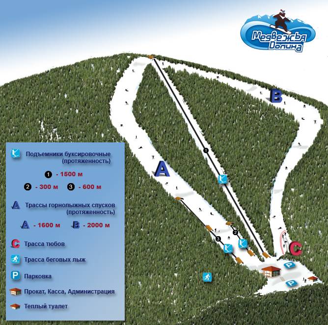 Pistekaart Medvezhya Dolina seizoen 2024/2025