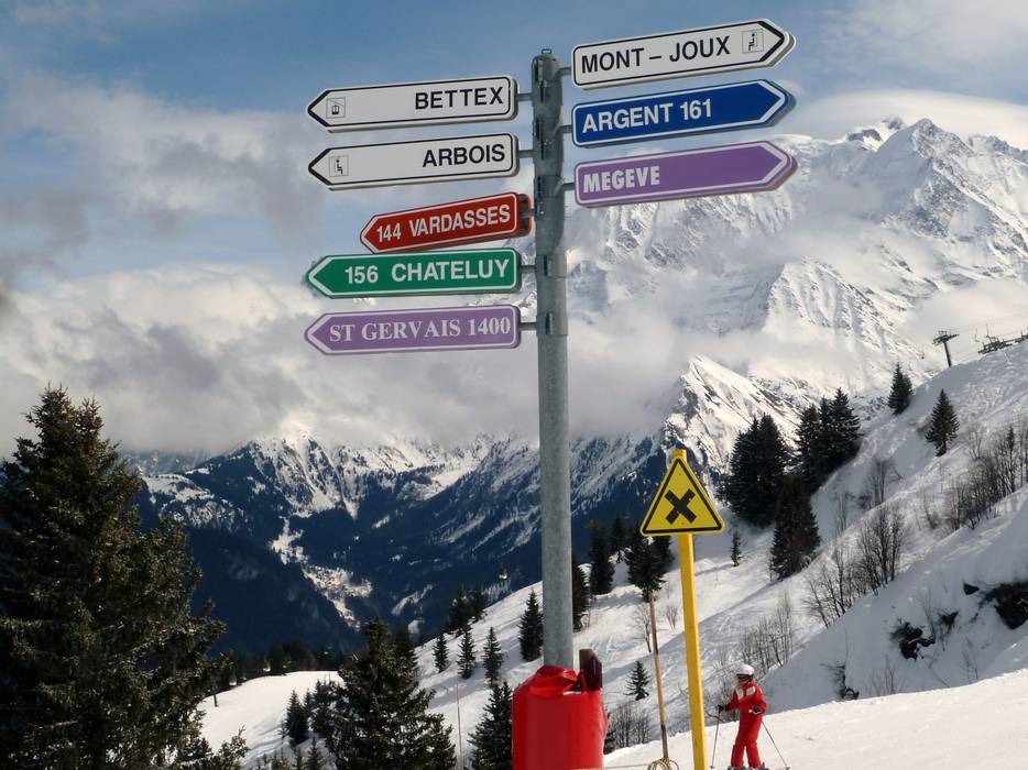 Oriëntatie (pistekaart, informatieborden, bewegwijzering piste) en veiligheid in het skigebied Megève/Saint-Gervais
