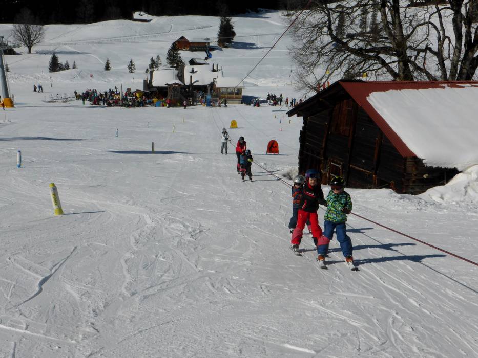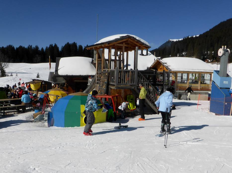 Het uitstekende oefenterrein van de skischool ligt centraal in het skigebied en is gemakkelijk te bereiken. Hier zijn er voor de kinderen onder andere kinderskiliften, transportbanden, golvende pistes en een draaimolen beschikbaar. Voor snowboardbeginners is de snowboardlift, die exclusief voor snowboarders is, een bijzonder hoogtepunt. De kinderen kunnen zich vermaken in het iglodorp en klimmen op de glijbaantoren. ’s Middags en in het weekend is het Skihäsliland ook geopend voor niet-deelnemers aan de skicursus. Bij het Skihäsliland bevinden zich twee restaurants (Familierestaurant Bidmi en het Bärgbeizli Bidmi), waar de kinderen speciale lunchaanbiedingen krijgen.