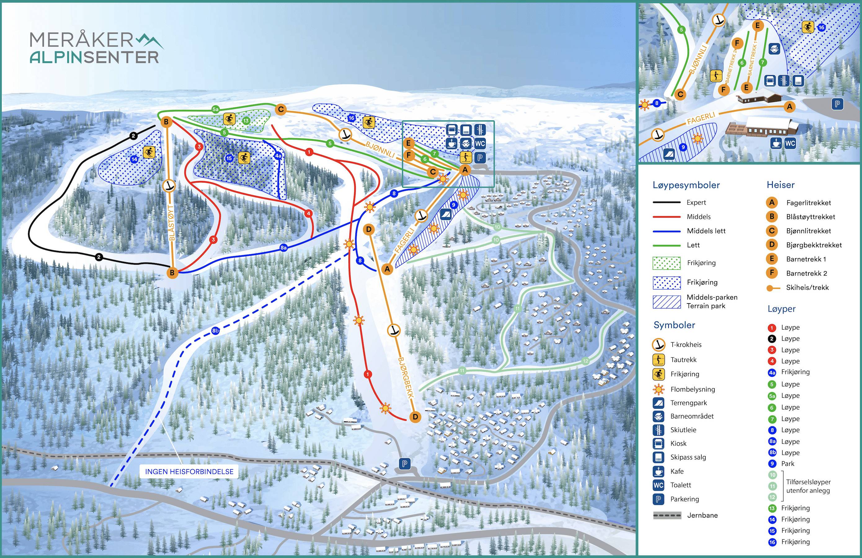 Pistekaart Meråker Alpinsenter seizoen 2024/2025