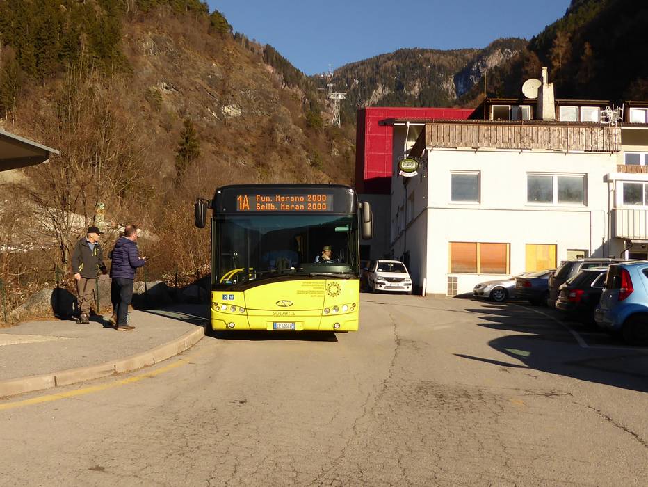 Het dichtstbijzijnde treinstation bevindt zich in Meran. Het dalstation van het skigebied Meran 2000 is vanaf het hoofdstation van Meran gemakkelijk met het openbaar vervoer te bereiken. - skibussen