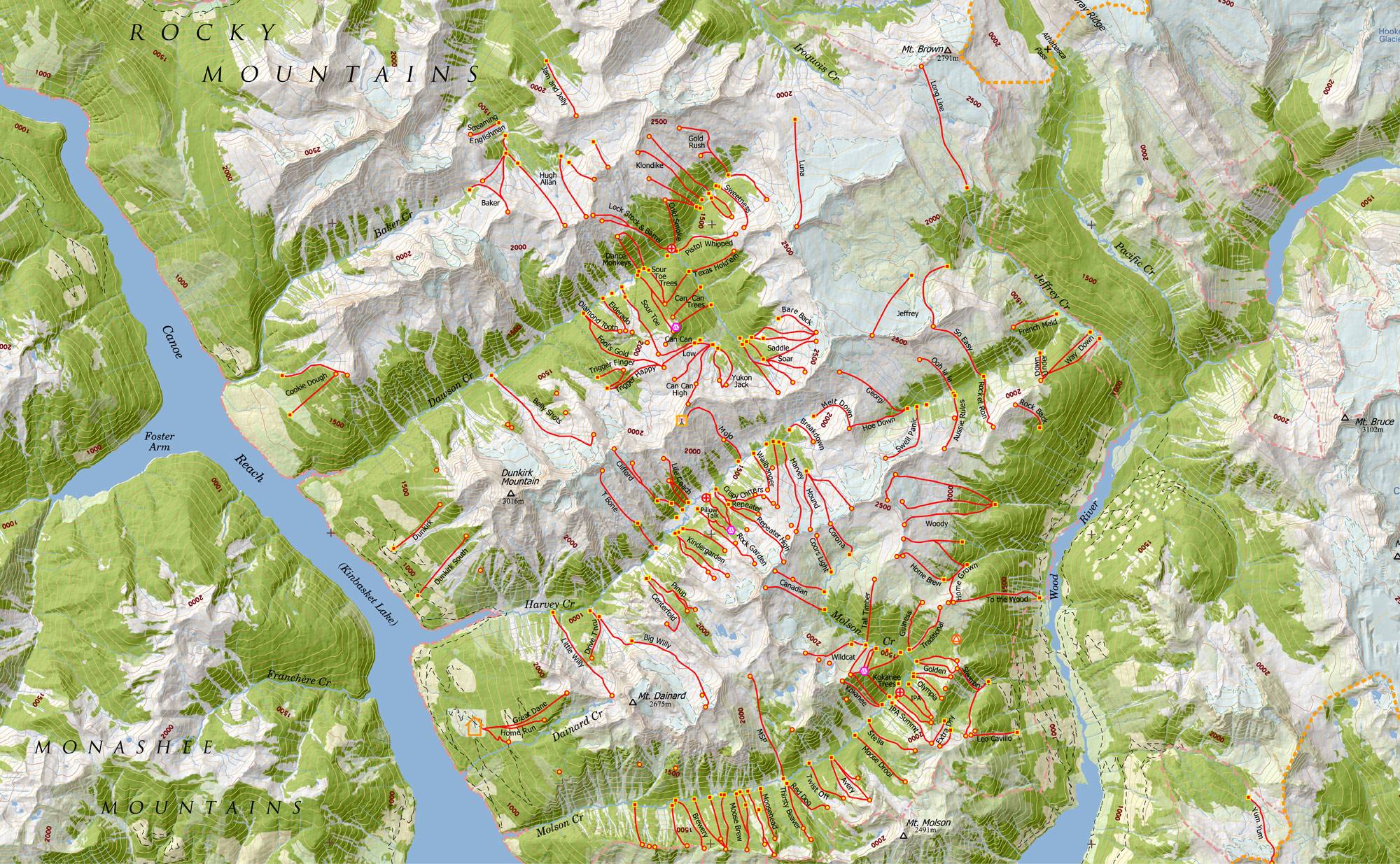 Pistekaart van het skigebied Mica Heli Guides – Mica Creek