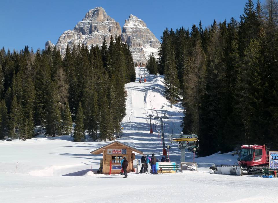 Het skigebied Misurina – Passo Tre Croci ligt in Cortina d’Ampezzo (Italië, Venetië, Belluno).