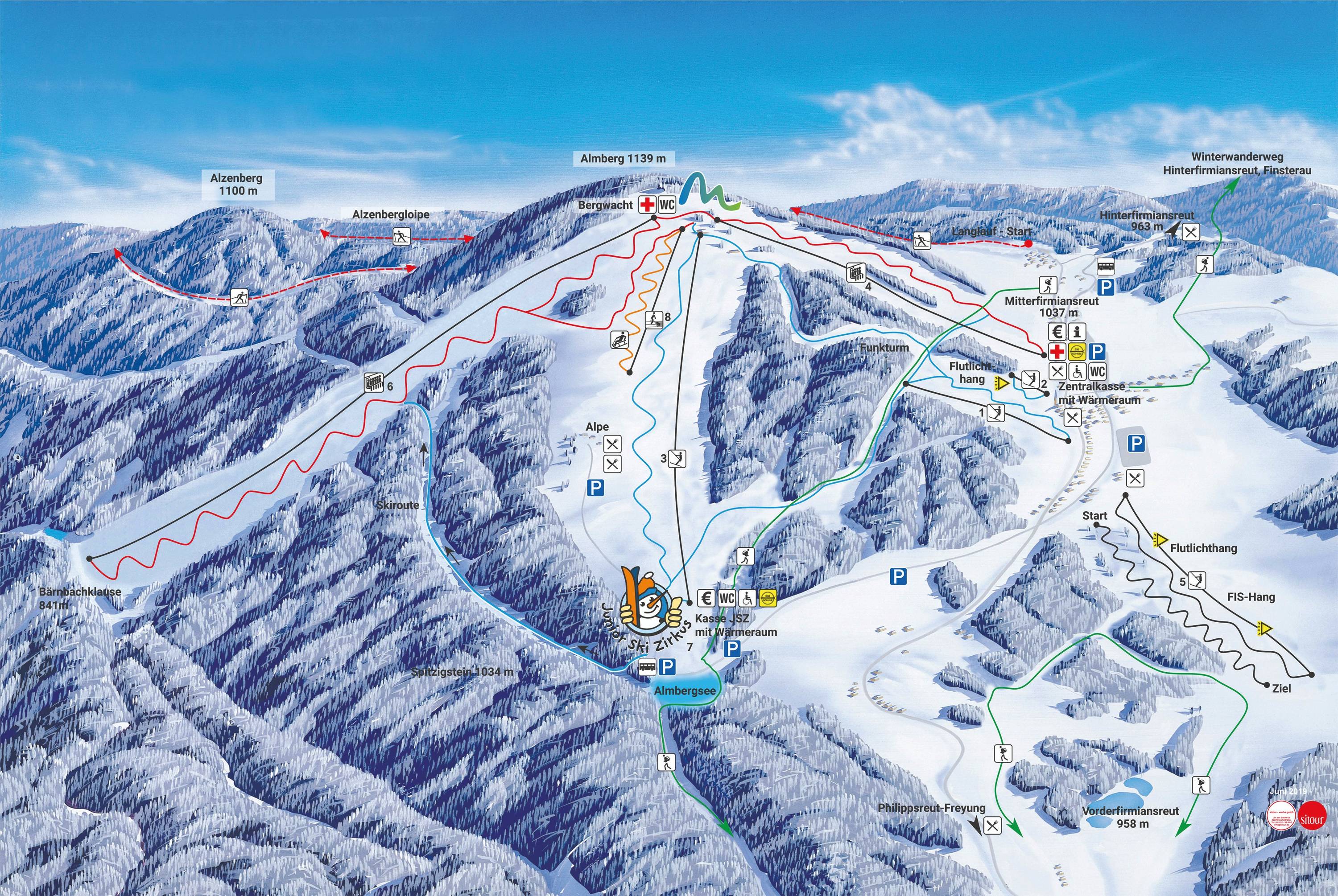 Oriëntatie (pistekaart, informatieborden, bewegwijzering piste) en veiligheid in het skigebied Mitterdorf (Almberg) – Mitterfirmiansreut
