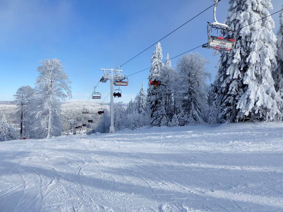 Met de nieuwe vierpersoonsstoeltjeslift naar de… Uitzicht vanaf de Almberg over het Beierse… Panorama in het skigebied Mitterdorf - Jouw…